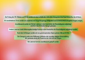 eine woche darauf findet der künstler laternenumzug statt, organisiert von martin schmid caiazza . gestartet wird in der neustadtgasse und
